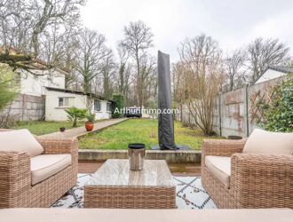 A proximité de la foret et des commodités, maison 5 pièces de 110 m² édifiée sur sous-sol total et comprenant : entrée, cuisine avec coin repas, séjour double avec cheminée et accès terrasse, WC. Au premier étage, dégagement distribuant trois chambres dont une avec salle d'eau privative, et mezzanine, une salle d'eau indépendante, WC. Belle terrasse très bien exposée (Sud-ouest) donnant sur un beau jardin paysagé avec barbecue traditionnel. Transport à proximité (Bus). Sous-sol avec garage double atelier et cave. Bon état général.